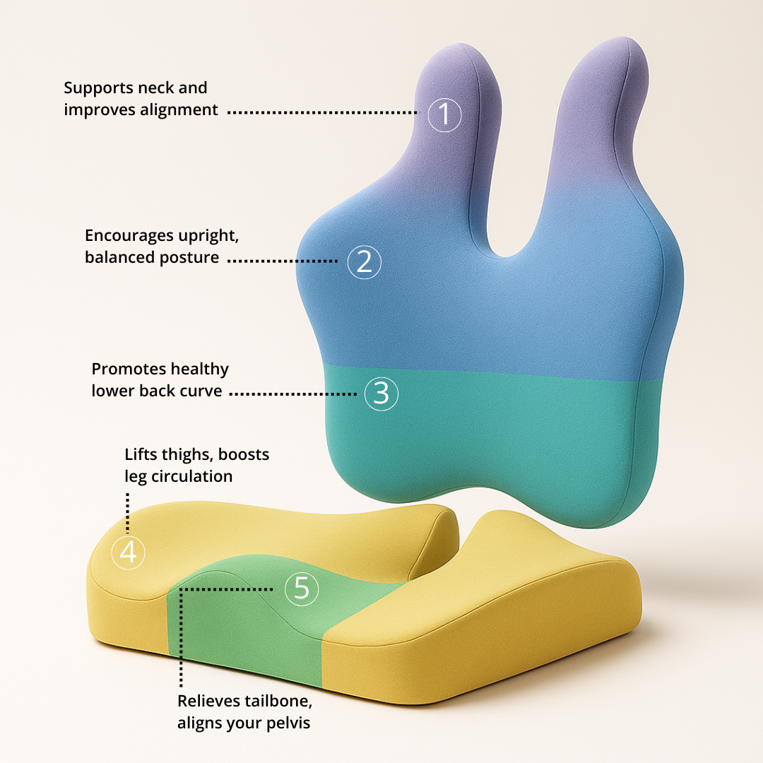 “This cushion supports key postural zones and encourages subtle core activation. It’s a great daily-use product for reducing lumbar strain, especially for home workers.”