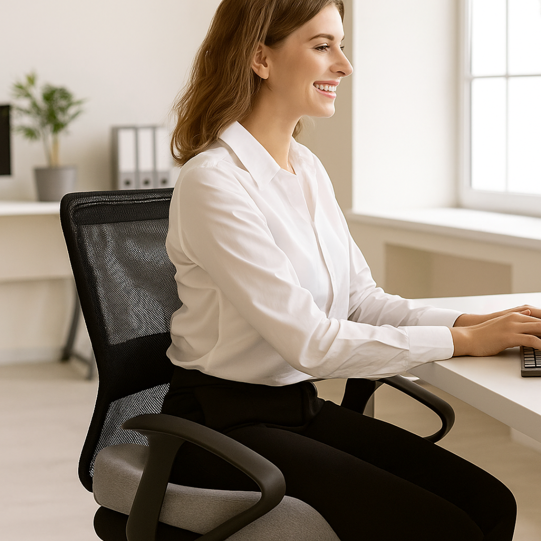 Sitting shouldn’t cause pain over time. Our dual-zone cushion system supports spinal alignment and reduces muscular fatigue, even during long workdays.